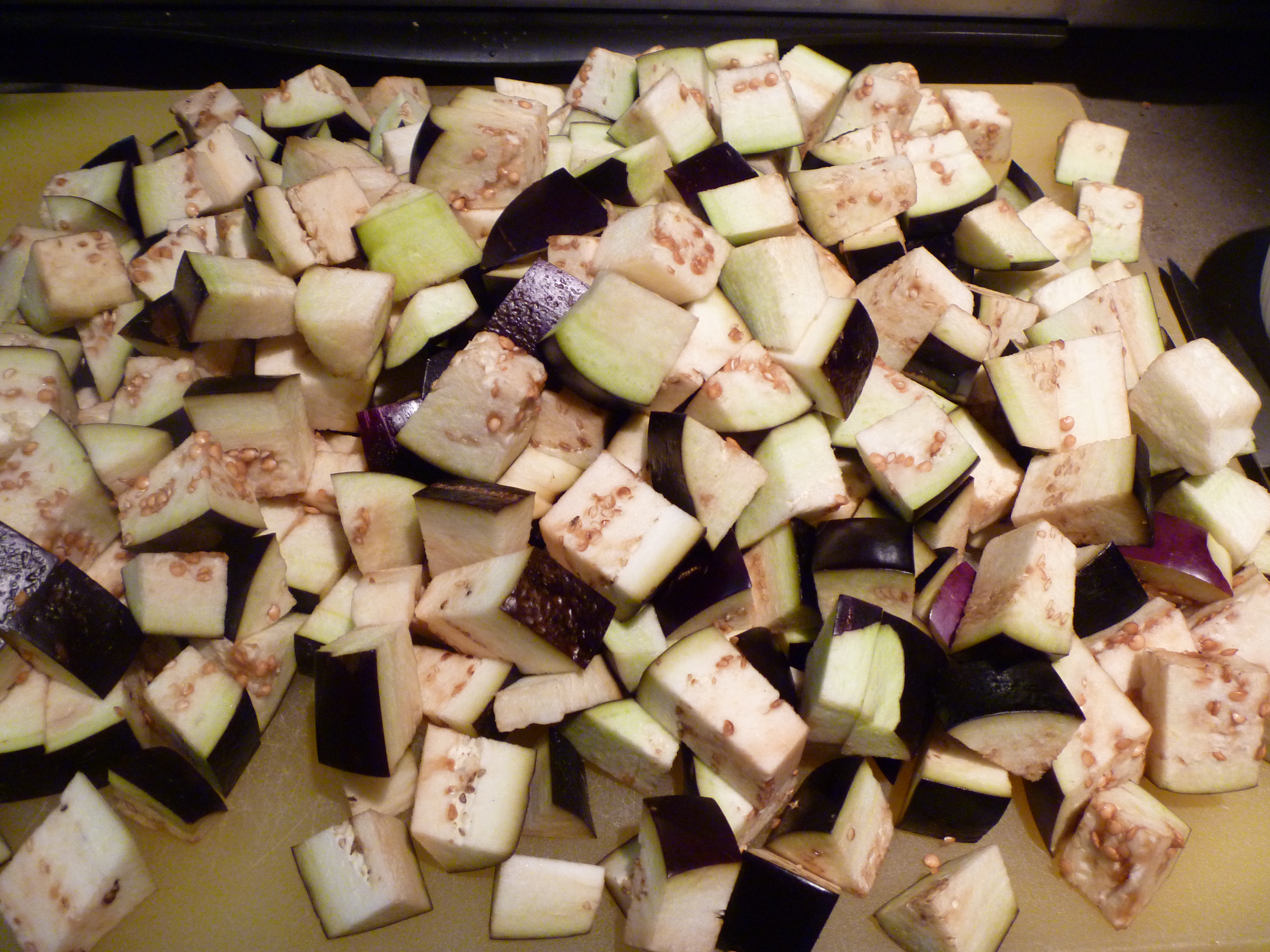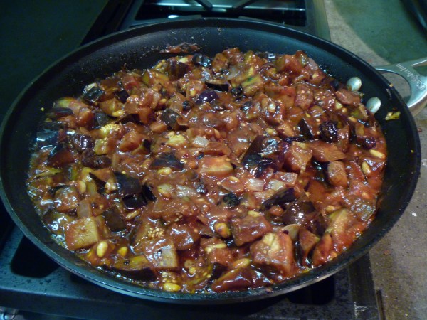 Hmmm. I so often treat the purplish meaty outcast as the focal point of our meal. What if that was to change? And what if, rather than baking it with sauces and cheese and traditional spices, it was altered and cooked alongside nuts and fruit? Stove top rather than oven?