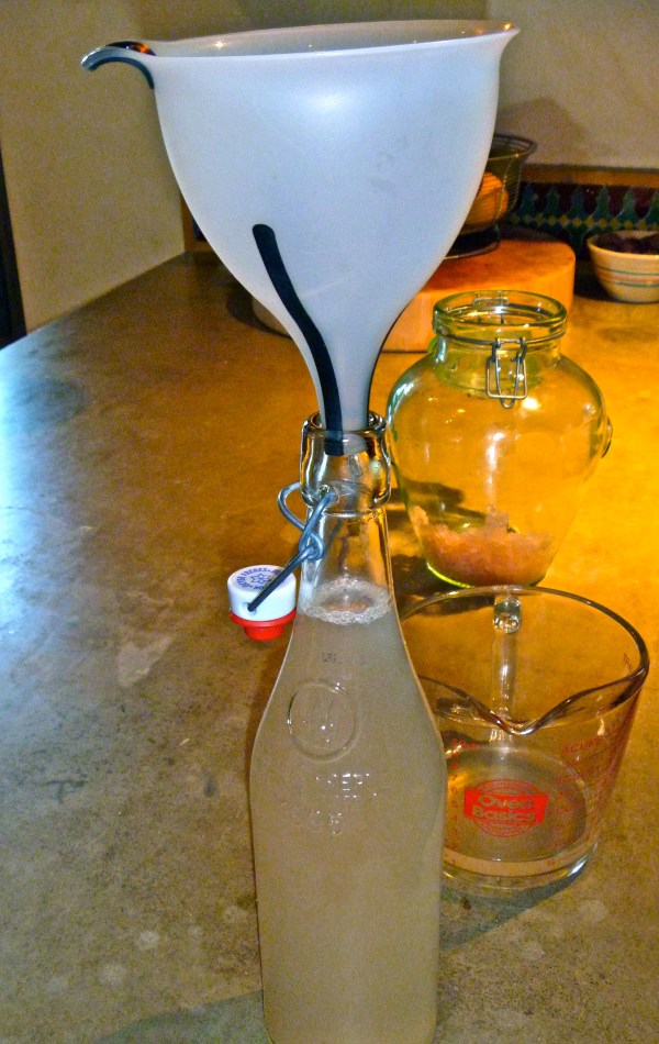 Rinse the grains prior to putting them into another batch of sugar water. I find that these stopper bottles work best. Sometimes I add another small piece of dried fruit to the bottled kefir. I let this sit for an additional 48 hours for a second fermentation before placing it into the fridge.