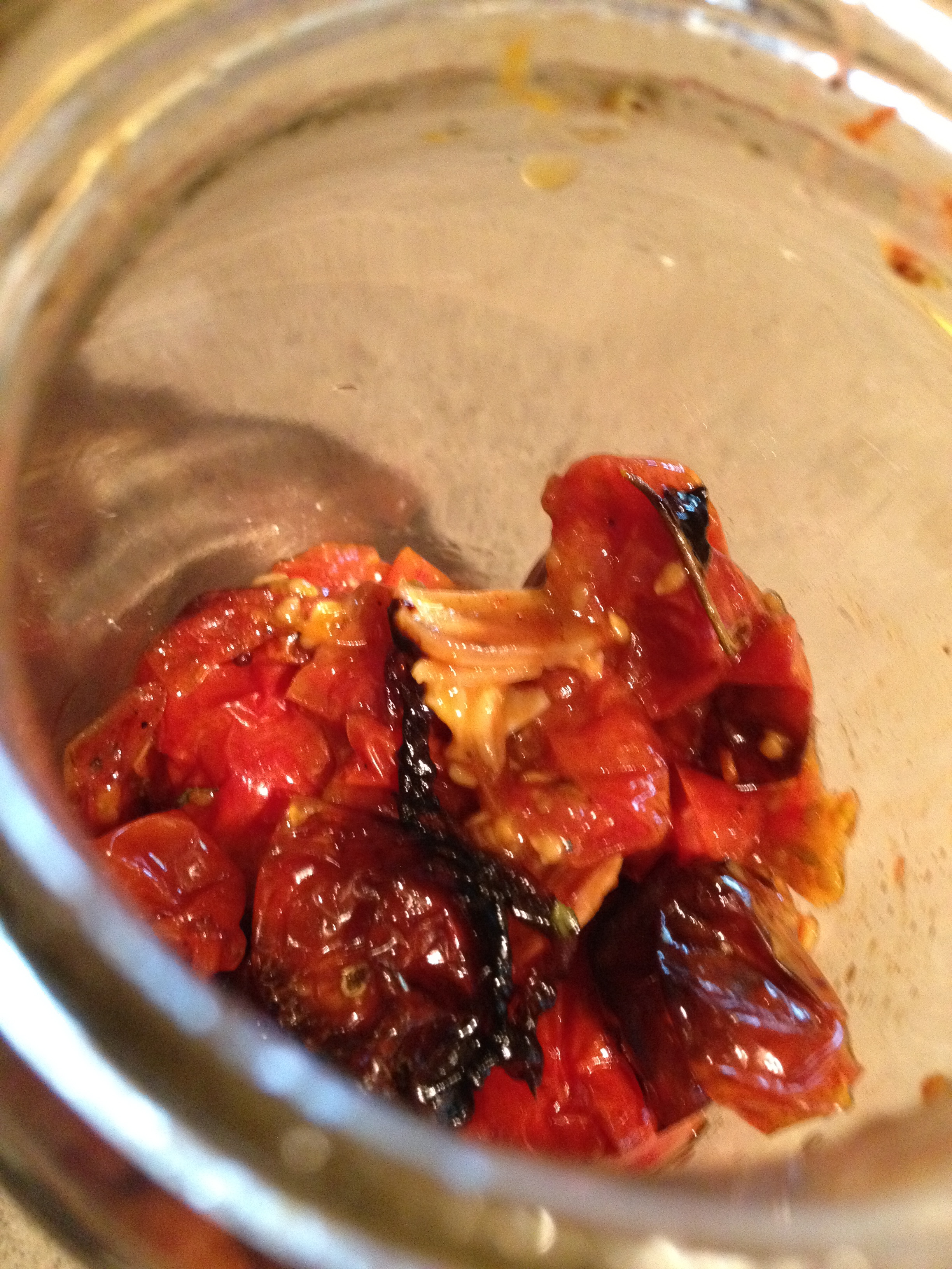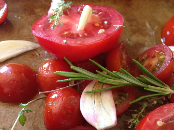 I oven roast tomatoes ALL the time! Our favorites ones are the sweet grape tomatoes…just slice in half, lay out cut side up on a broiler pan, sprinkle liberally with Kosher salt and place in a 225 degree oven until they shrink and concentrate their flavors (a few hours or so). The house smells heavenly and we can then eat them like candy! I store them in containers in the fridge and use them in salads, on pizza, in sandwiches, in omelettes and more. They are similar to sun-dried tomatoes in texture. I’ve even dropped them in olive oil to make roasted tomato oil. Yum! If I don’t let them go as far as the sun-dried texture, then they are fantastic chopped up as a quick sauce for pasta or slathered on grilled bread. Oh, tomatoes! Can’t wait to harvest the ones in the garden!