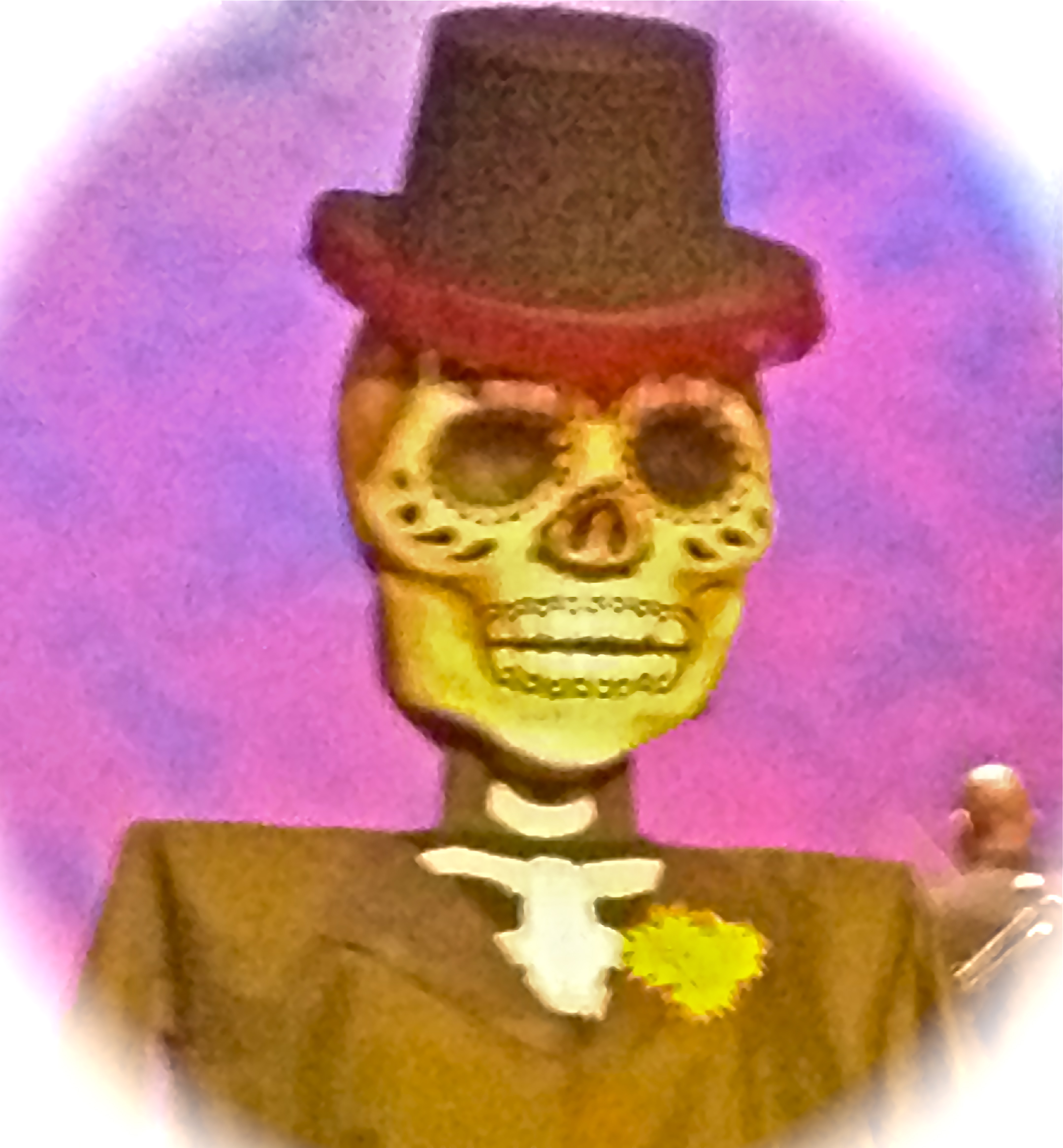 One of the things I enjoy most about Día de Los Muertos is the colorful Mexican folk art that accompanies it. These portraits or shadow boxes and figurines are often brightly decorated skeletons. Some of these skeletons are referred to as Catrina, the skeleton of a high society woman in festive apparel and flowers.