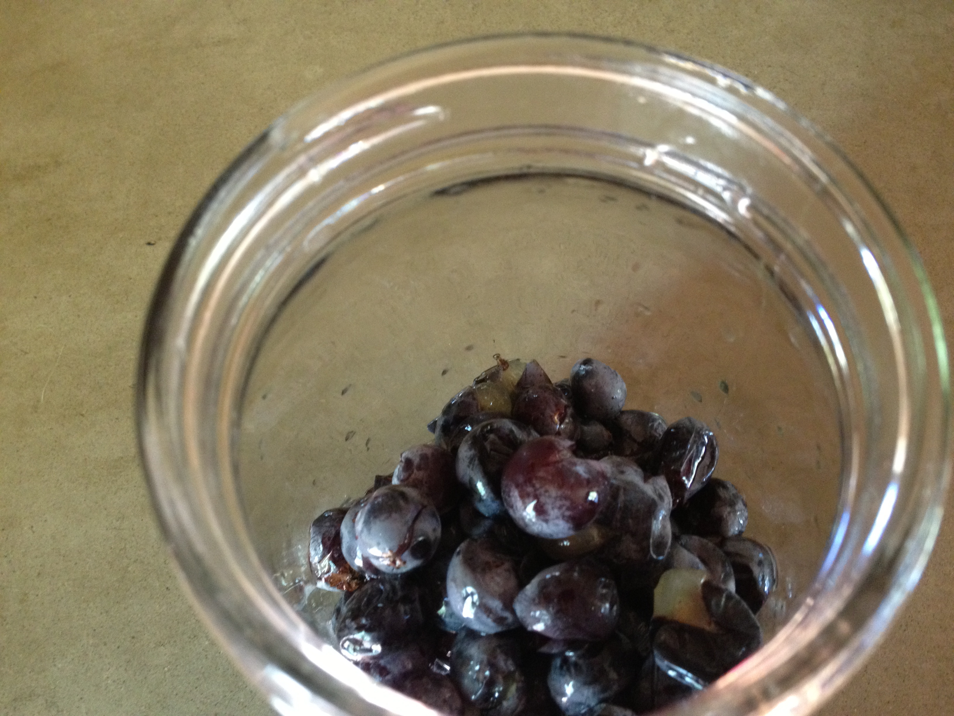For my first foray, I kept it simple. Infusions shouldn’t be created with top shelf liquors as any subtle (and expensive) flavors will likely be lost. I had a partial bottle of local rum that hadn’t been terribly well received so infusing it seemed like the only way it might be used. I began with local concord grapes gently squeezing each one in order to break the skin and bruise the fruit just slightly. This allows the infusion to occur more quickly.
