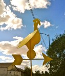 Chickens do not appear in Christianity until the New Testament. In the book of Matthew, a passage likens Jesus to a hen tending her flock. One writer speculates on how religious art might be different had the image caught on. Envision the good shepherd replaced with the tending hen. The rooster played a critical role when Peter was told that he would deny Jesus three times “before the cock crows”. This translated to roosters being placed atop weather vanes on homes and churches as a reminder.
