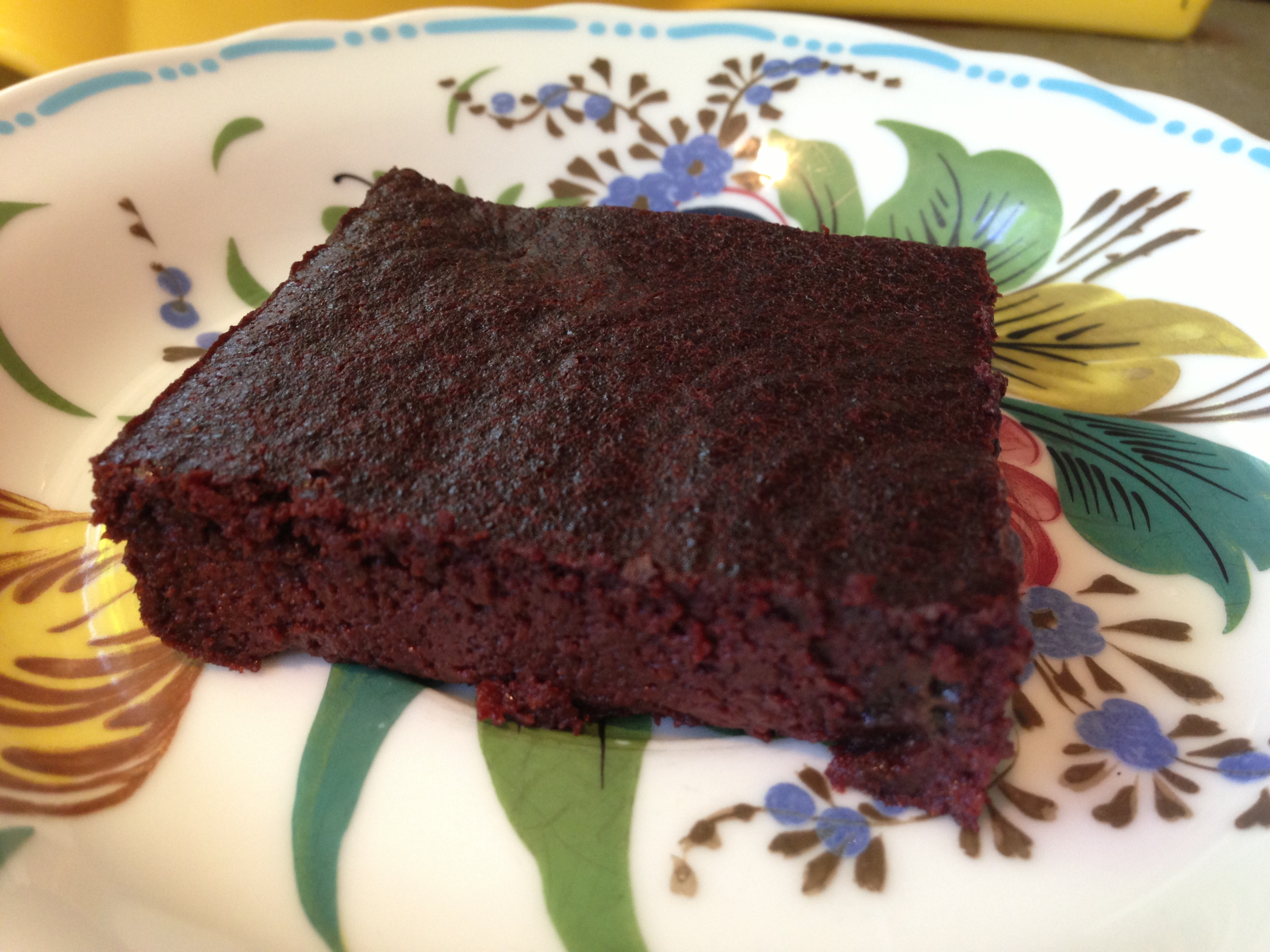 / June 15, 2013The beet puree makes a deep moist brownie – probably a great cake too!