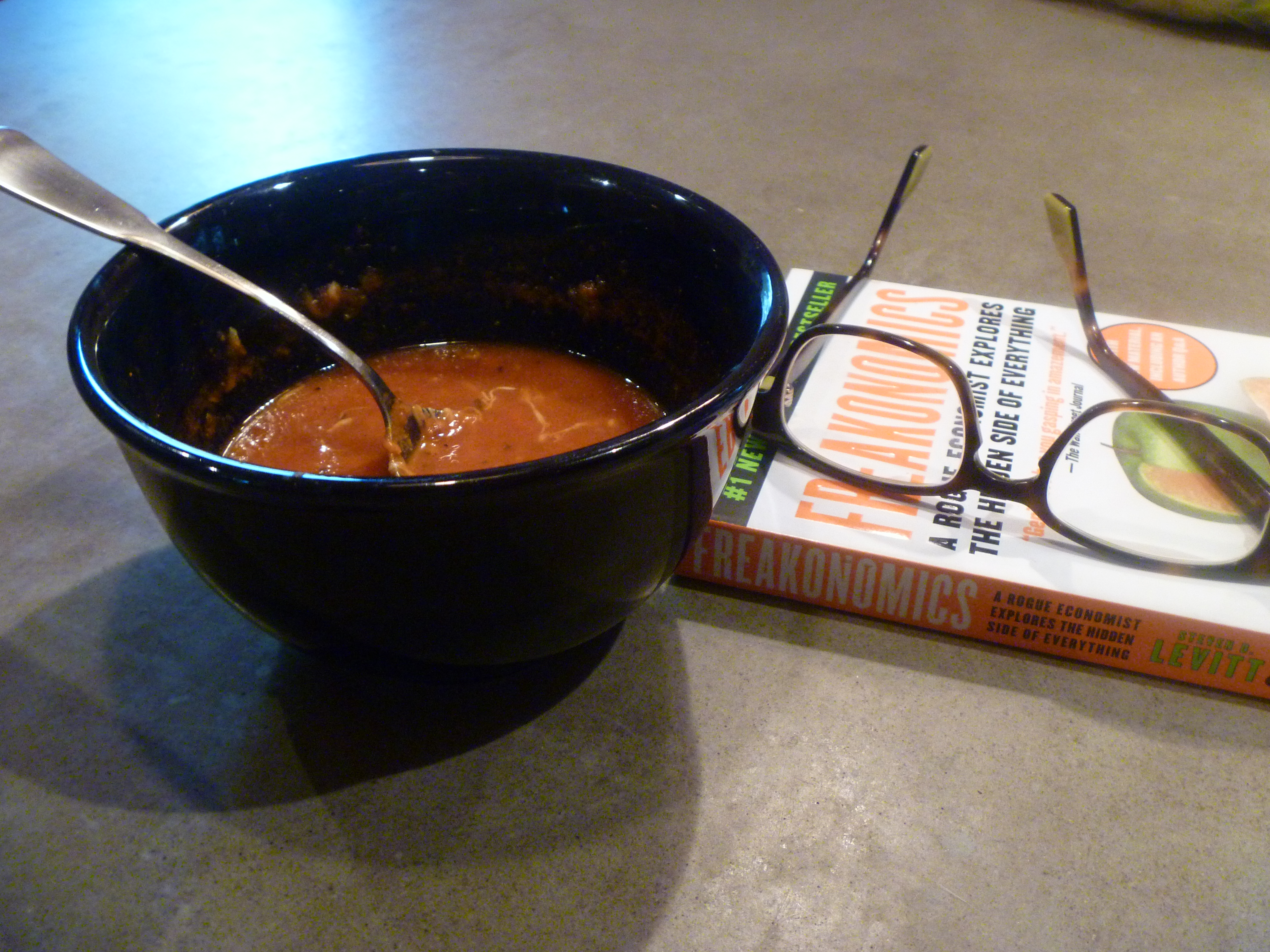 I don’t know if there’s any truth to the story that blood thins when one lives in the desert. Despite bright sun, I think it’s cold outside but I’m inside with a good book and a cuddly kid and a pot of soup on the stove. Good book + cuddly kid + soup = perfection in my book.